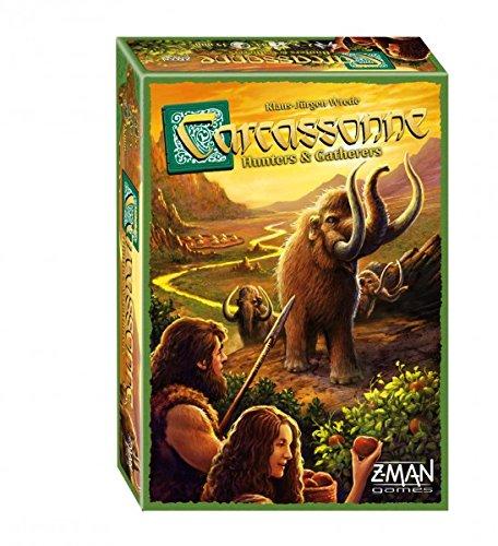 Instead of cities, roads, and farms, Carcassonne: Hunters and Gatherers has forests, rivers, lakes, and meadows. Players' meeples can represent hunters (when placed in the meadows), gatherers (in a forest), or fishermen (on a river segment). They also have huts, which can be placed on rivers or lakes to get fish from the entire river system.