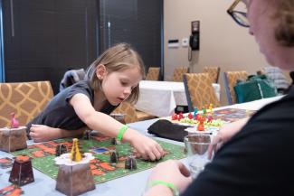 The hall will have a hall manager who will be on hand throughout the day to help get families settled and set up with a game if they didn’t bring their own. A mini-library will be available with a selection of games geared towards younger children (ages 4-10) and volunteers will also be there who can help teach the games. Please note that while children of any age can play games in this hall, there must be at least one child of age 12 or under among each group of children playing, along with the participating adult(s) (parent or guardian). Also, any adult age 18 or over intending to play in this hall, must be accompanied by an attendee under the age of 18. Please check with the hall manager if you have any questions about these policies.