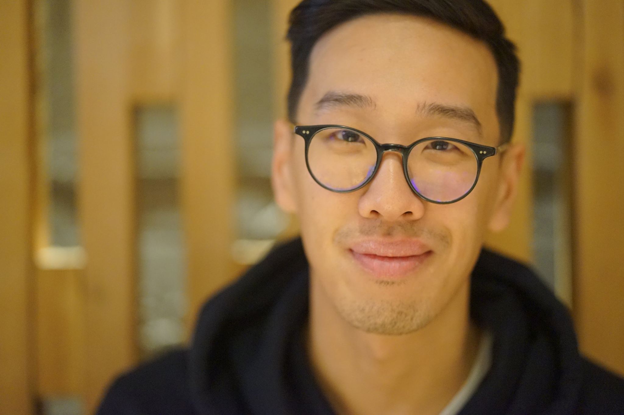 Photo of Christopher Chung with a back arrow and check mark emoji around him.
