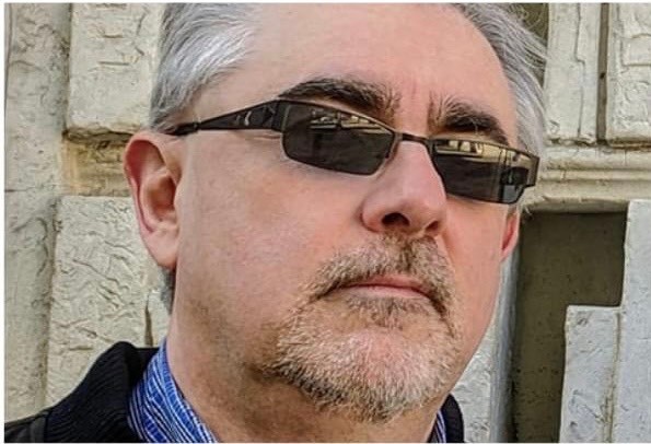 Head shot of Bill Benham standing in front of a bookshelf.